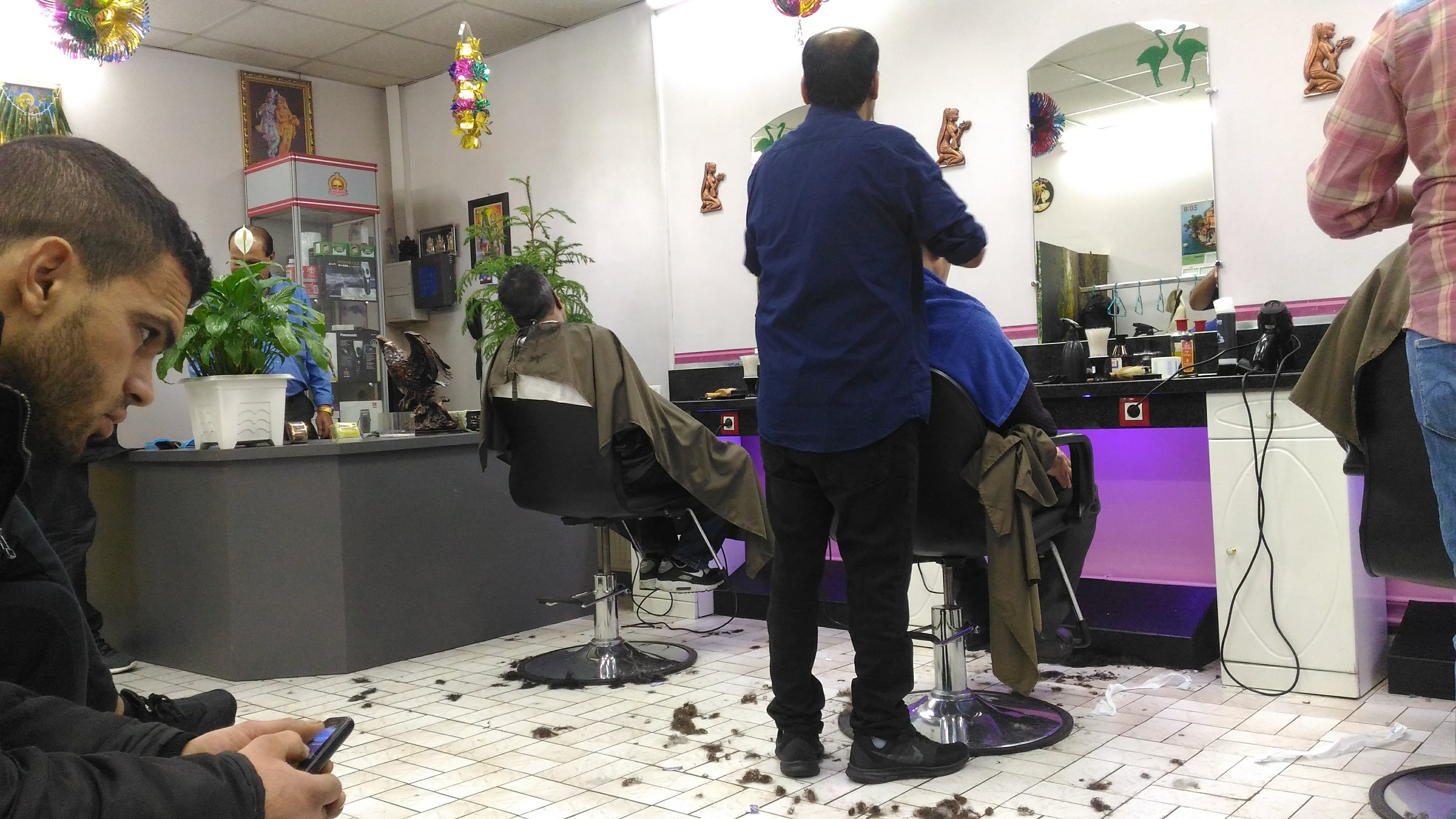 Petit salon de coiffure indien ou les coiffeurs ont des doigts de fee tellement, ils ont le compas dans l'oeil pas cher mais efficace