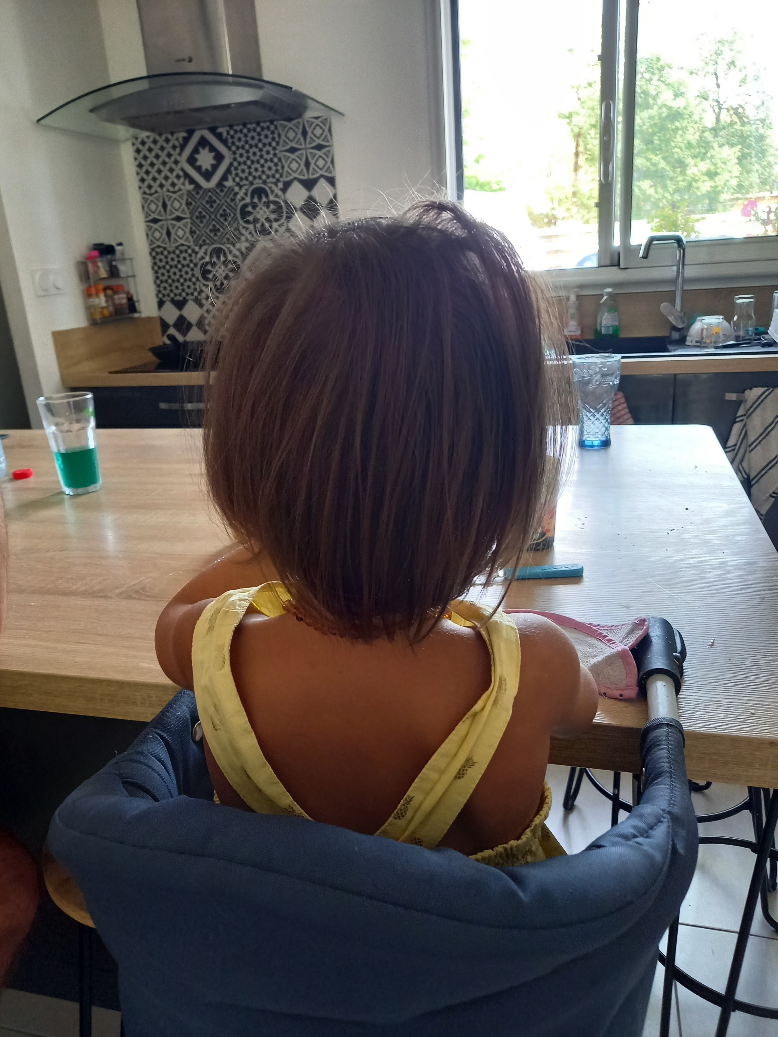J'y vais pour ma fille de 2ans et demi qui a les cheveux a la garçonne car ils mettent du temps a poussé. Je souhaite juste égalisé derrière (3cm). Sans shampoing rien on m'annonce un prix de 22e. Je trouve ça cher, je le dit gentiment et après discussion avec la responsable on me fait un geste et on m'annonce 16e. Je reste car je suis la et qu'il faut que je lui coupe avant la rentrée mais sincèrement jy reviendrais pas. Bcp trop cher pour les quelques mèches coupees que j'aurais finalement dut et pu lui faire moi meme. Photo 1 avant Photo 2 après