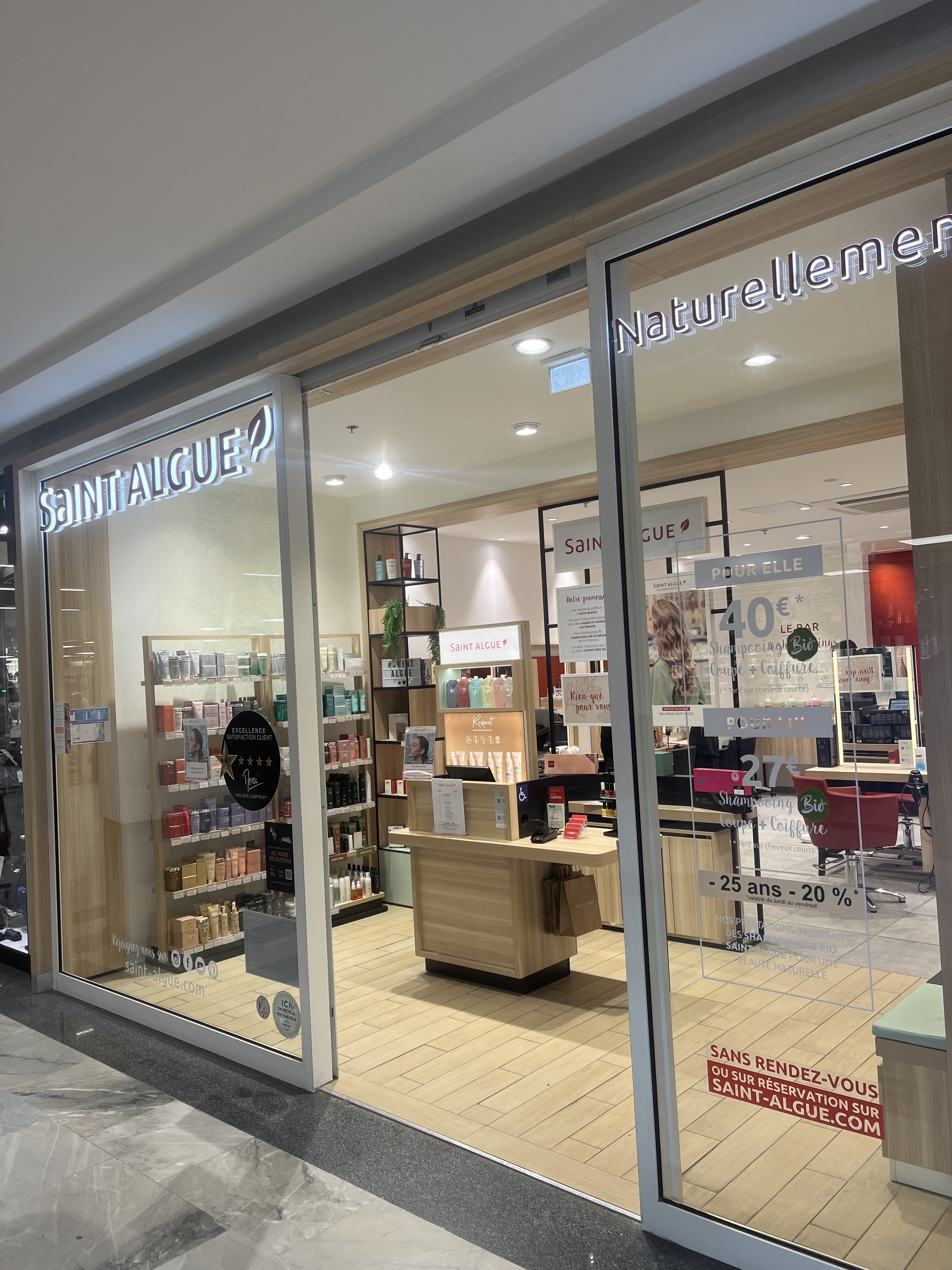 J’ai enfin trouvé une coiffeuse (Laurena) qui maîtrise la coupe en brosse contrairement au salon situé dans la même galerie commerciale qui s’est bien f…de moi ! Je ne vais plus que chez St Algue. Les Rv son respectés, l’accueil est parfait, le travail est très bien fait et rapidement. Bravo et merci.