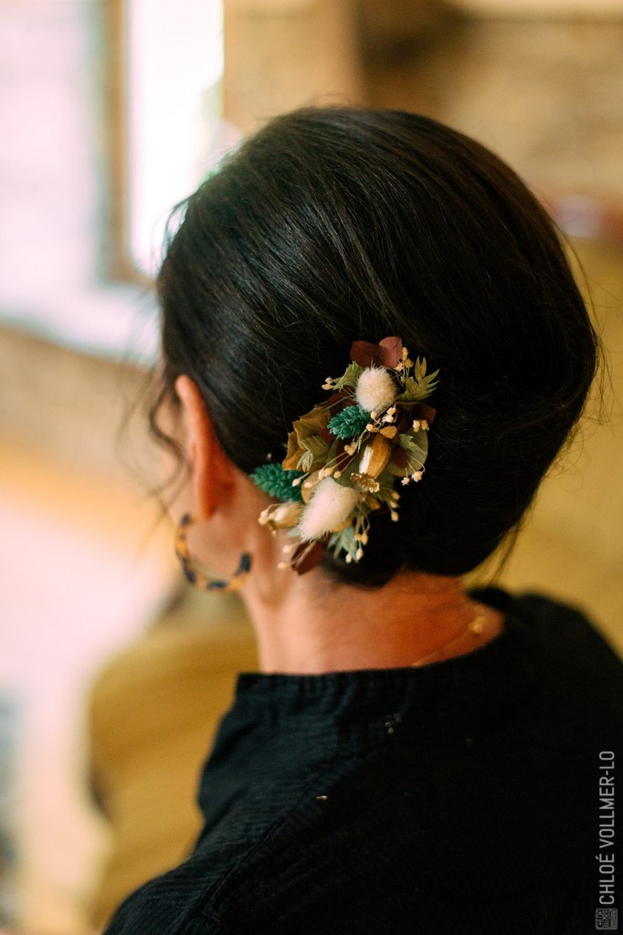 Mélissa a réalisé début août, sur notre lieu de mariage, les coiffures de nos témoins, sœur, amies et mamans soit 8 personnes (ma témoin étant coiffeuse je n'ai pas fait appel à Mélissa pour moi mais j'aurai pu) et nous ne la remercierons jamais assez pour la qualité de ses prestations et sa gentillesse. Nos préparatifs ont été grâce à elle et grâce à la maquilleuse Gaëlle qu'elle nous avait conseillé, une vraie bulle de bienveillance, de joie et de beauté. Elle a su s'adapter à tous les types de cheveux et ses coiffures ont tenu jusqu'au bout de la nuit. Elle est très professionnelle car elle avait demandé en amont des photos des coiffages désirés ce qui lui a permis d'^tre très efficace dans un timing serré et elle a su intégrer les broches fleuries que j'avais réalisé en cadeau à mes proches. Ses prix sont très raisonnables étant donné la qualité de son travail et de son déplacement. Mélissa, je sais que c'est à ton tour de te marier prochainement, alors très beau mariage à toi et encore merci!